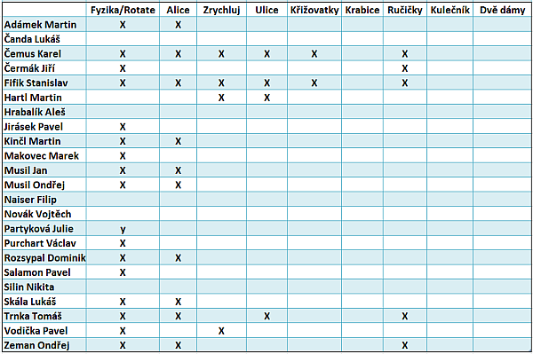 1. Kontrola, že jsou všichni zapsaní (a že vědí kterou úroveň si zapsat)