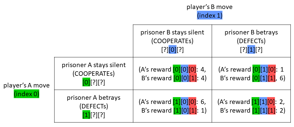 Note: You can assume that the payoff matrix will always be symmetrical. The player, therefore, does not have to know if it is a player A or B. They share exactly the same opportunities and risks.