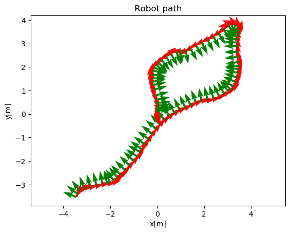 #!/usr/bin/env python3 # -*- coding: utf-8 -*- import matplotlib.pyplot as plt import sys import os import math import numpy as np sys.path.append('hexapod_robot') #import hexapod robot import HexapodRobot as hexapod #import communication messages from messages import * if __name__=="__main__": robot = hexapod.HexapodRobot(0) #turn on the robot robot.turn_on() #start navigation thread robot.start_navigation() #assign goal for navigation goals = [ Pose(Vector3(3.5,3.5,0),Quaternion(1,0,0,0)), Pose(Vector3(0,0,0),Quaternion(1,0,0,0)), ] path = Path() #go from goal to goal for goal in goals: robot.goto_reactive(goal) while robot.navigation_goal is not None: #sample the current odometry if robot.odometry_ is not None: path.poses.append(robot.odometry_.pose) #wait time.sleep(0.1) #check the robot distance to goal odom = robot.odometry_.pose #compensate for the height of the robot as we are interested only in achieved planar distance odom.position.z = 0 #calculate the distance dist = goal.dist(odom) print("[t1b_eval] distance to goal: %.2f" % dist) robot.stop_navigation() robot.turn_off() #plot the robot path fig, ax = plt.subplots() path.plot(ax, 30) plt.xlabel('x[m]') plt.ylabel('y[m]') plt.axis('equal') plt.show()