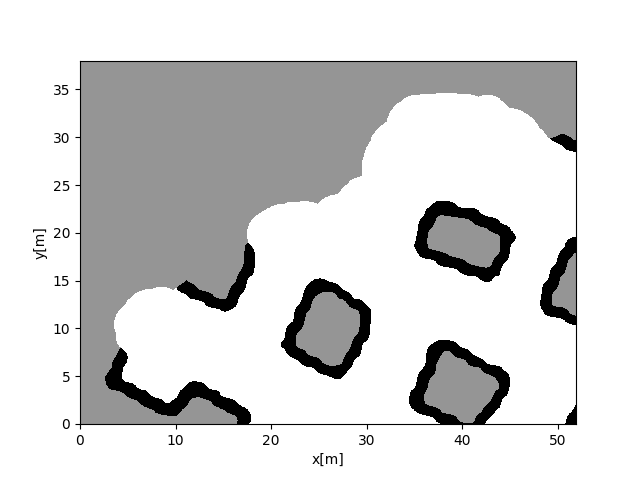 The second step is to perform the connected component analysis on the free-edge cells. A nice explanatory overview of the connected component analysis can be found here. The main idea is to connect the free-edge cells that coincide into the connected component to effectively reduce the number of frontiers and select only the representatives of the whole cluster.