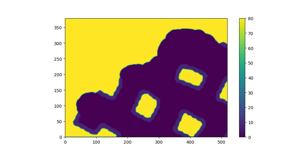 import skimage.measure as skm labeled_image, num_labels = skm.label(free_cells, connectivity=2, return_num=True)