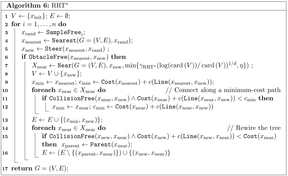 [1] Karaman, Sertac, and Emilio Frazzoli. “Sampling-based algorithms for optimal motion planning.” The international journal of robotics research 30.7 (2011): 846-894. Journal version Arxiv version