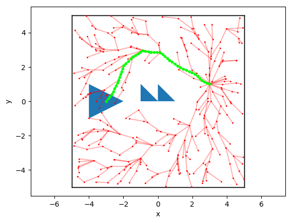 In class RRTPlanner.py implement RRT/RRT* algorithm according to the description and pseudo-code from [1].