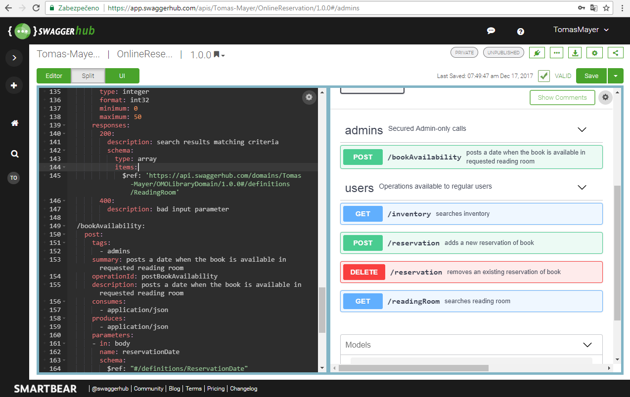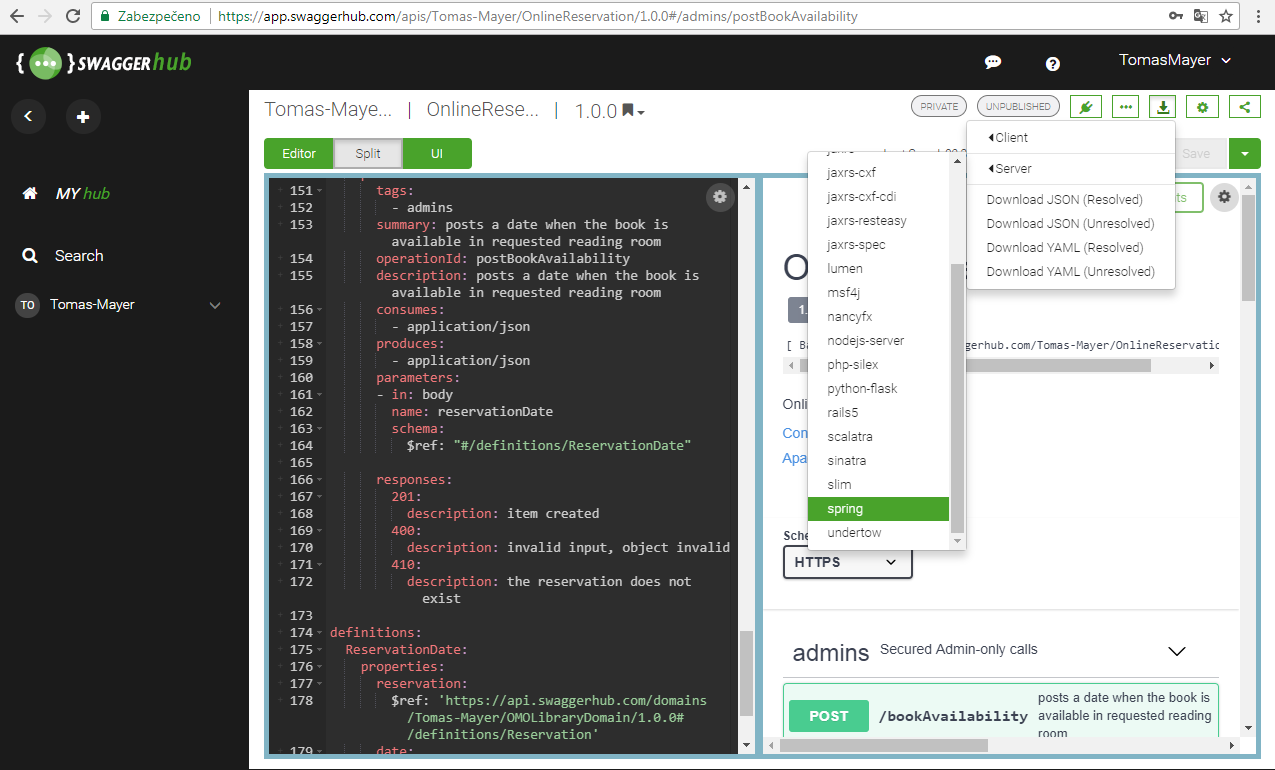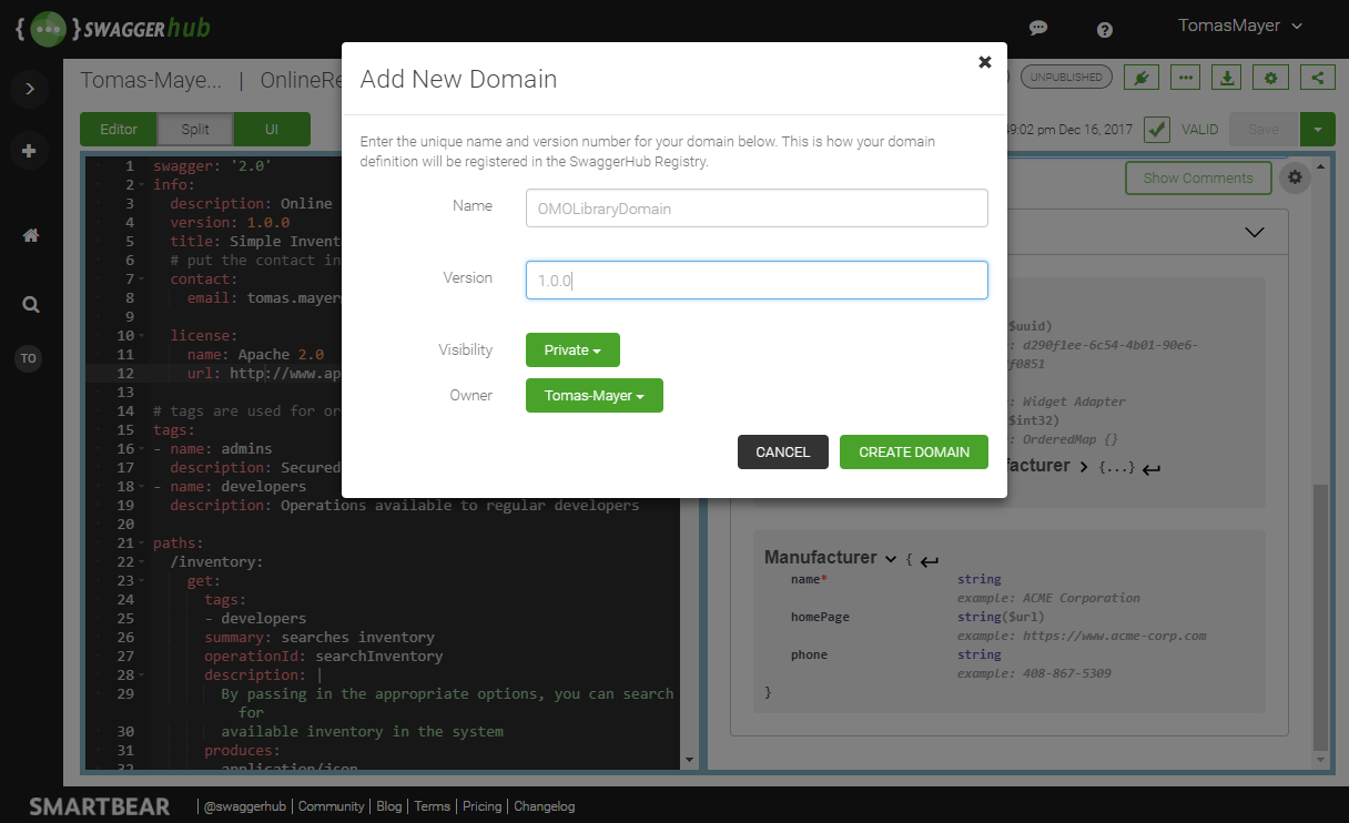 definitions: ReservationDate: properties: reservation: $ref: 'https://api.swaggerhub.com/domains/Tomas-Mayer/OMOLibraryDomain/1.0.0#/definitions/Reservation' date: type: string format: date